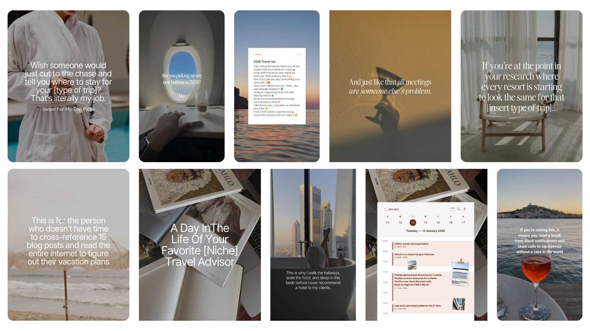 For travel advisors who are done staring at Instagram thinking, “Okay but… what do I actually post today?”